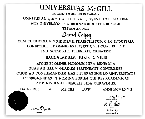 In 1972, David Cohen graduated from this esteemed institution and subsequently registered with the Canadian Bar Association and the Quebec Bar Association. He has been practicing Canada immigration law since 1974.